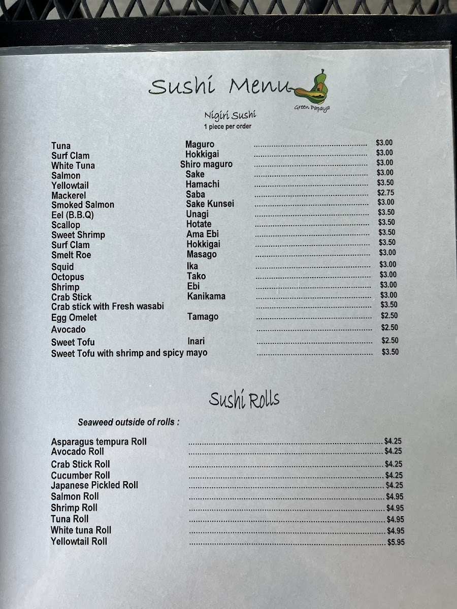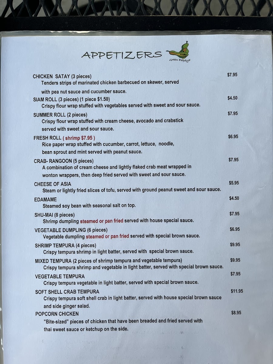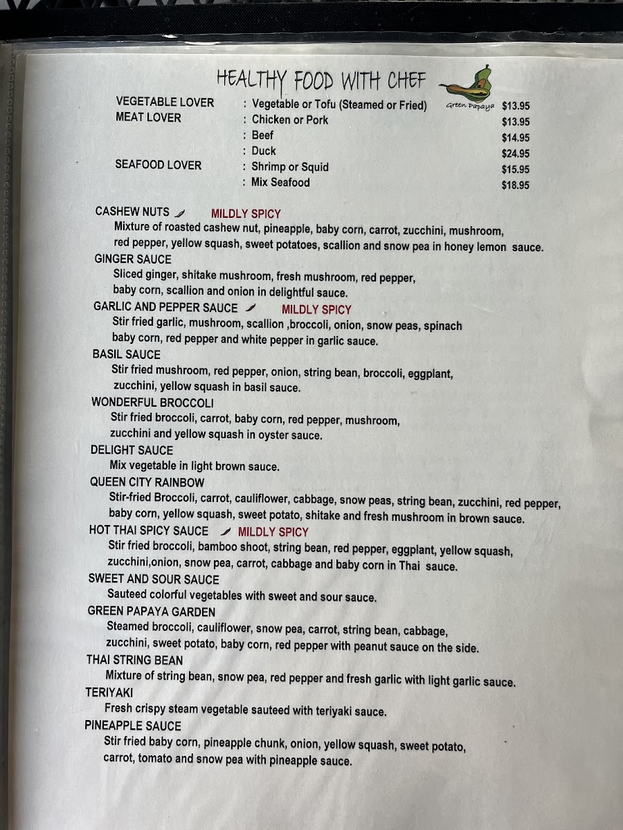 If you're craving authentic, vibrant flavors, look no further than the Green Papaya - Mariemont Menu. Nestled at 4002 Plainville Rd in Cincinnati, OH, this cozy spot offers a menu brimming with fresh, bold ingredients and exciting dishes. Whether you're in the mood for savory curries, perfectly grilled meats, or light and zesty salads, Green Papaya delivers the perfect balance of flavors that will transport you to a world of culinary delight. Each dish is crafted with care, using the finest ingredients to bring out the rich, traditional tastes of Southeast Asia. From the first bite to the last, the menu promises a delightful journey that will satisfy your cravings and leave you coming back for more.